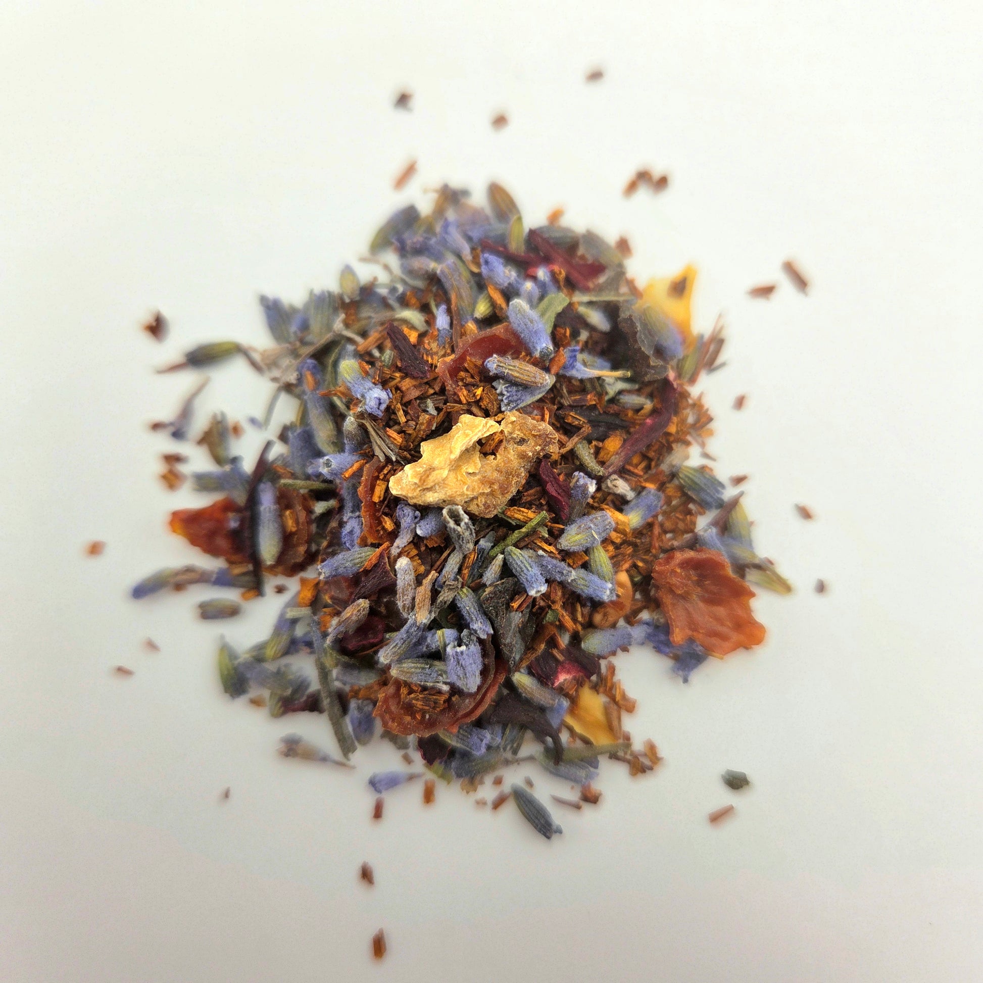 Ingredients: lavender, rose hips, orange peel, rooibos, hibiscus flower